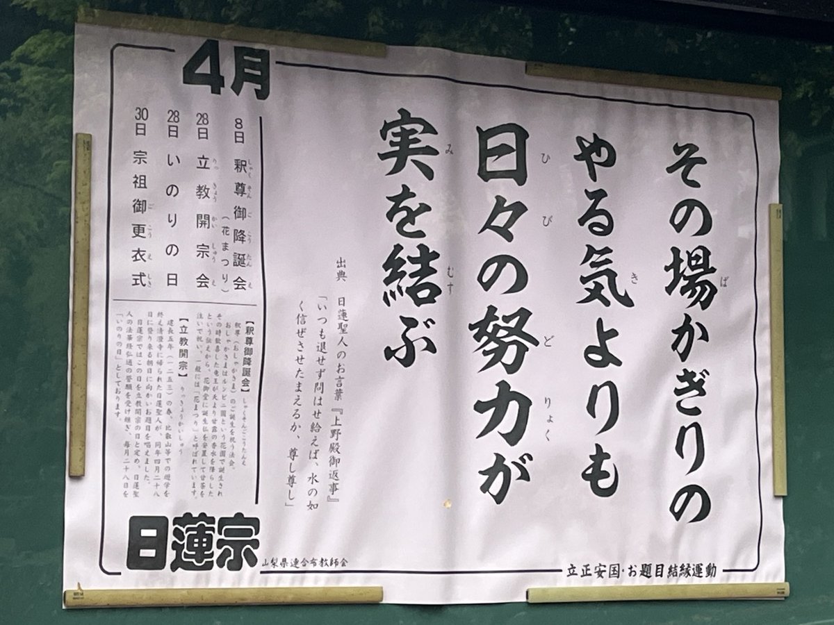 4月30日おはようございます4月ももう終わり……。気候が安定しておりませんので、お身体には呉々もお気をつけてお過ごしください。今日も1日頑張っていきましょう。写真は月初にみた教宣。常に怠らず励まないと..