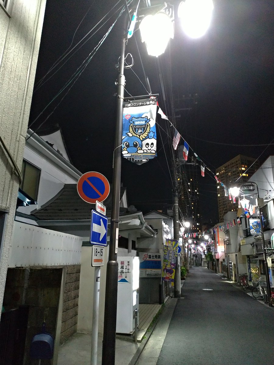 感謝です♨️🐬タペストリーもありがとうございます。#frontale川崎フロンターレ@frontale_staff明日(4/28)の午前中川崎駅付近のニコニコ通り、温泉通り、栄通りなどのポスター配布を..