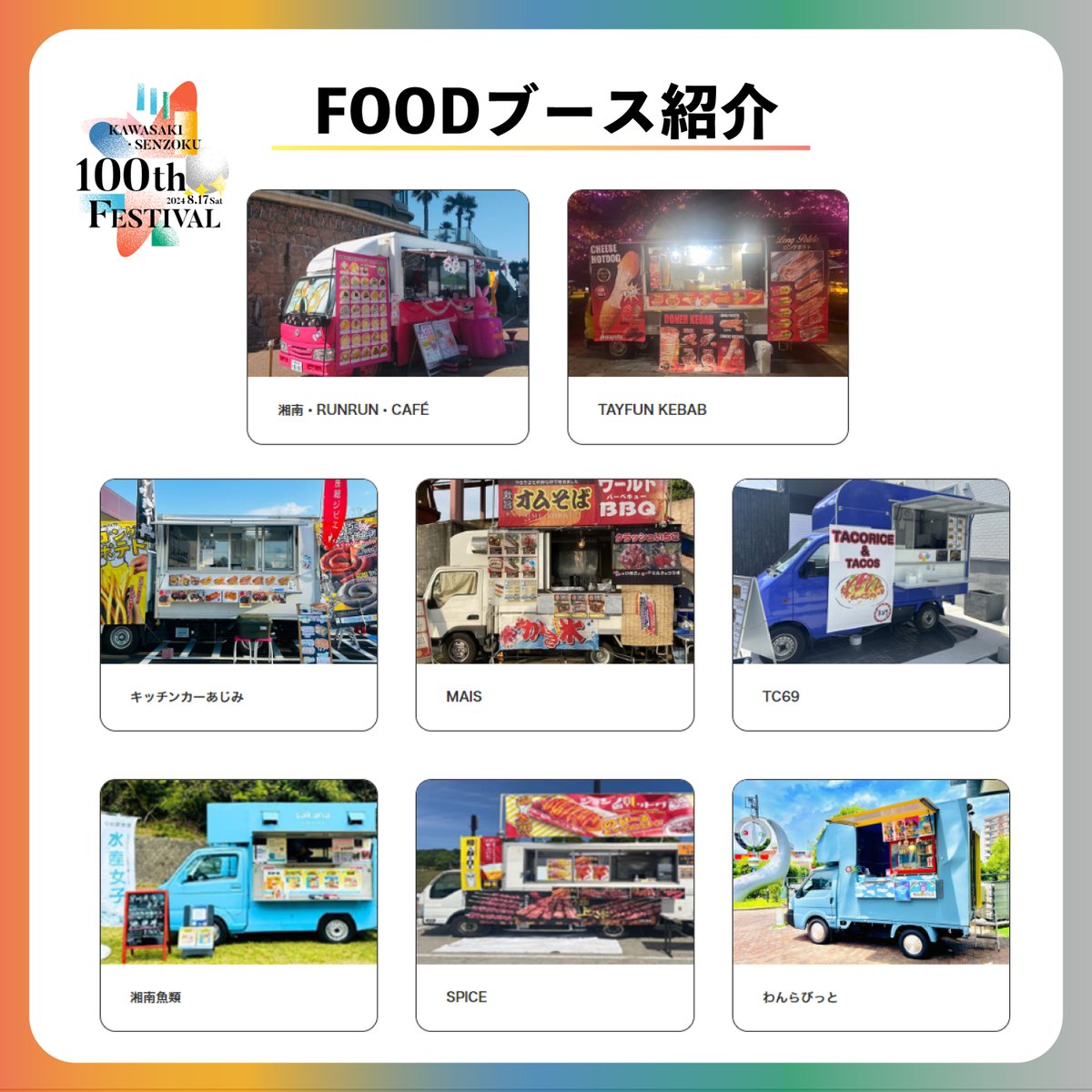 ☆★8/17KAWASAKI・SENZOKU100thFESTIVAL開催まであと5日★☆有名店のキッチンカーが並び、家族で楽しめる豪華イベントや記念式典もあります!普段は予約の取れない有名店のキッチ..