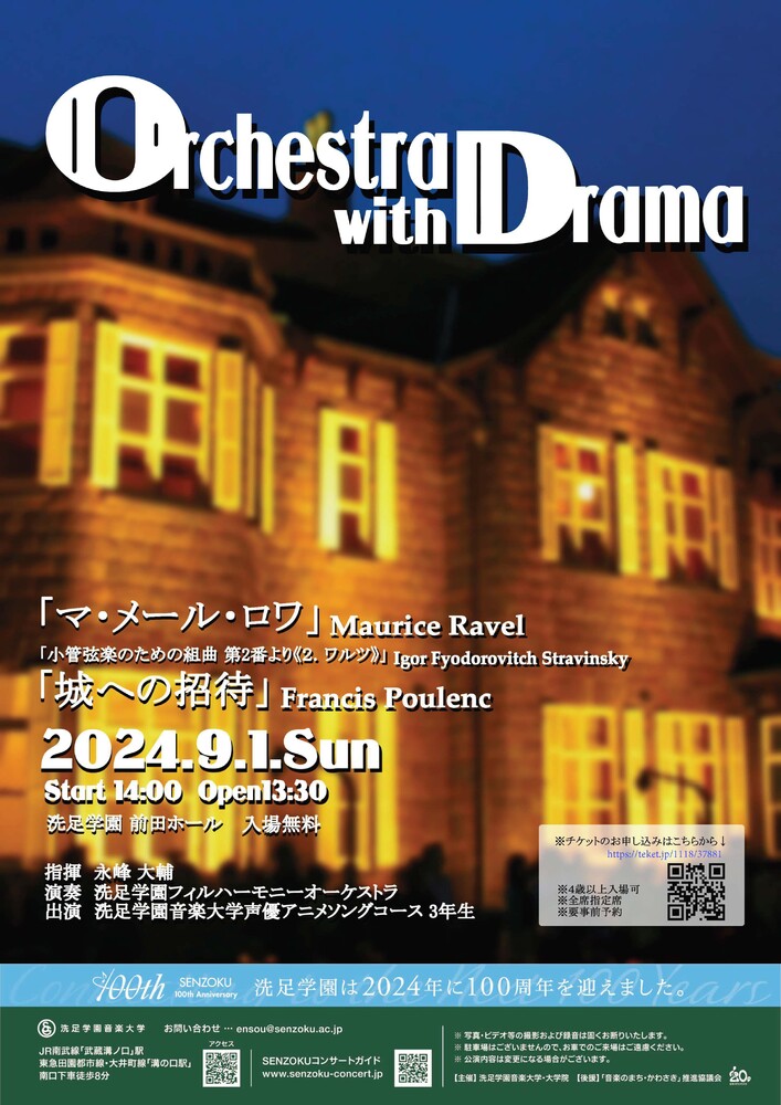 【演奏会情報】『Orchestra with Drama』 ◆9月1日(日) ◆14:00開演(13:30開場) ◆前田ホール ◆無料 ◆4 歳以上入場可 詳細はこちら https://senzoku-concert.jp/concert/3086/