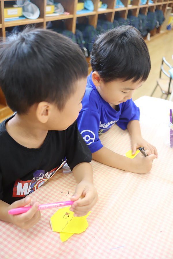 残念ながら雨で延期になった移動動物園 『クラスで移動動物園を作っちゃおう』と折り紙でひよこを作りました 『他の動物も作りたい』という声もあったので、色々な種類の動物を作って、にぎやかな動物園にしていくようです