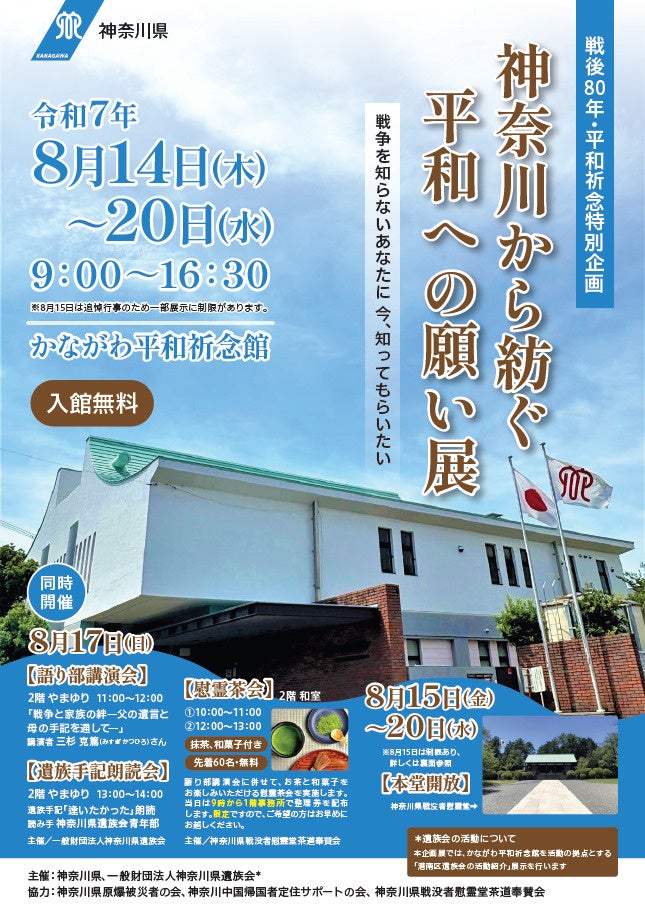 神奈川県のプレスリリース(2025年7月17日17時10分)戦後80年・平和祈念特別企画「神奈川から紡ぐ平和への願い展」を開催します