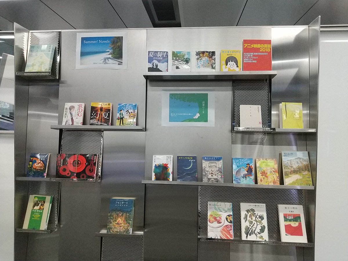 #中野図書館【おススメ本棚】今年も暑い夏が来ました。そんな夏の季節に合うような本を小説中心に選んでみました。ちまたでよく出てくるものや、独断で選んだものやなんとなく選んだものもあります。興味をひかれたら、ぜひ手に取ってみてください。7/31まで。