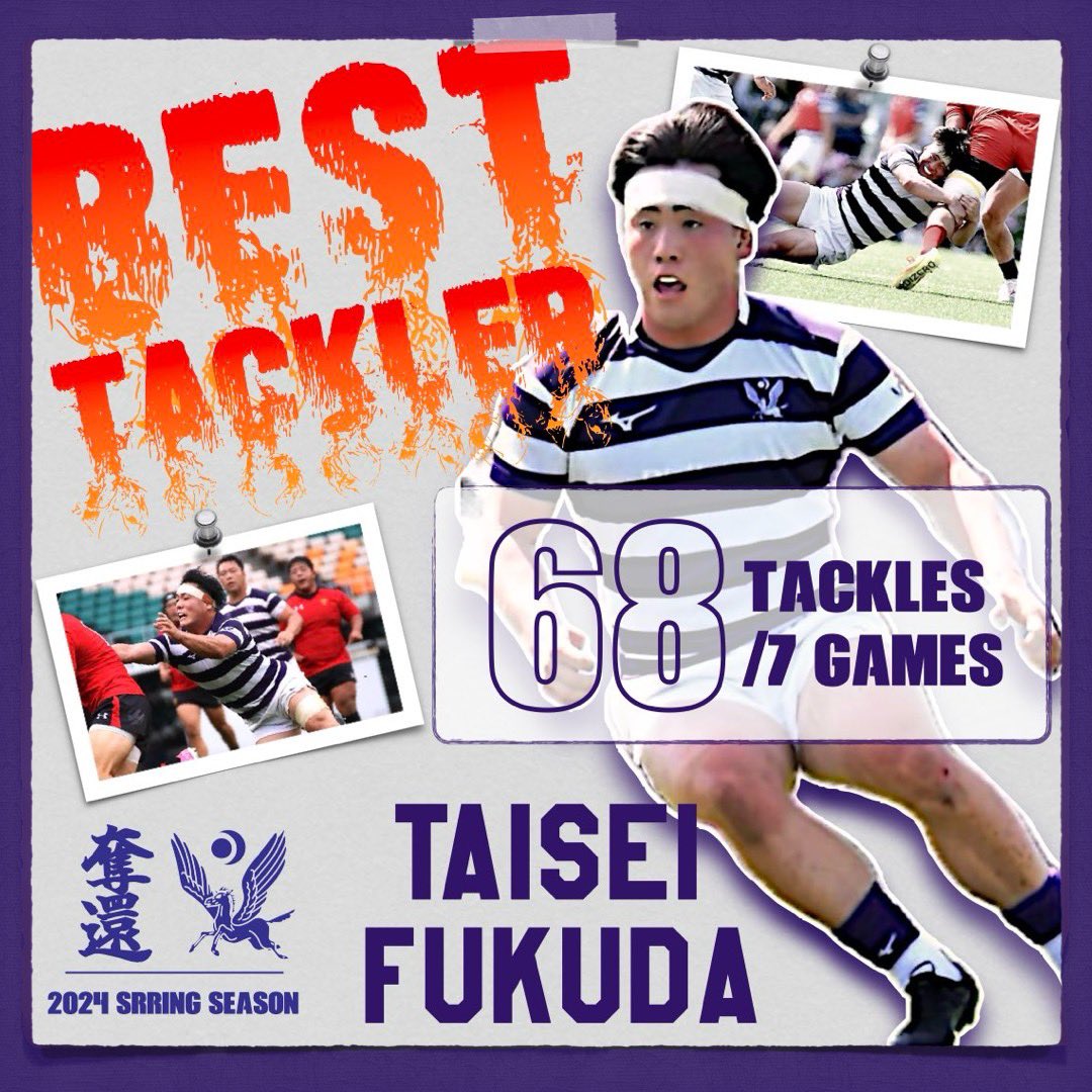 【SPRINGAWARD-BESTTACKLER-】2024春シーズンのBESTTACKLERを発表致します。この賞はこの春行われたAGame(春季大会5試合+招待試合2試合)でのタックル成功数のラン..