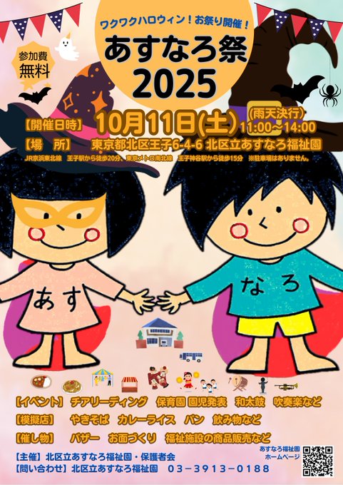【あすなろ祭開催!】王子の「北区立あすなろ福祉園」で、今年も楽しいお祭りが開催されますテーマは「ワクワクハロウィン」10月11日(土)11:00〜14:00北区立あすなろ福祉園(北区王子6-4-6)※..