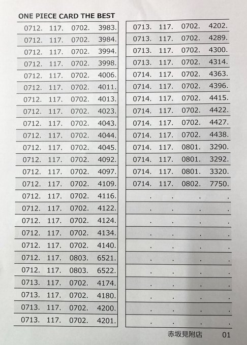 赤坂見附駅店7月27日(土)発売#ワンピースカードゲーム『ONEPIECECARDTHEBEST』抽選結果発表ご当選の方は必ず受付時の「レシート控え」と「ポイントカードorアプリ」と「ご本人様確認書類..