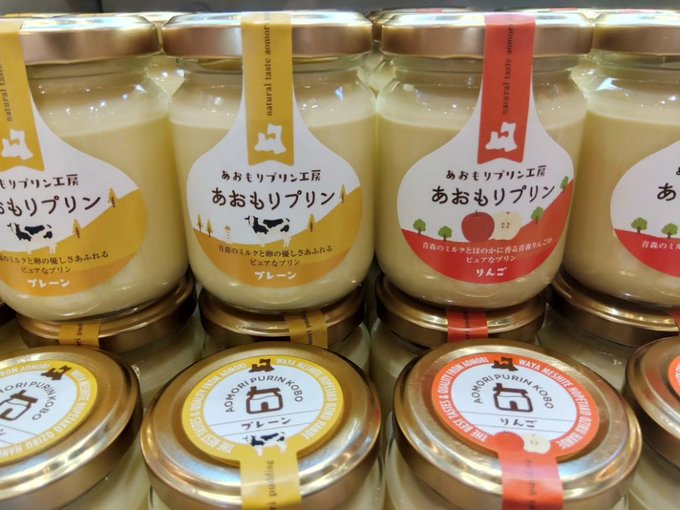 【AoMoLink〜赤坂〜】ナチュールからあおもりプリン入荷しました!プレーン、りんご、チョコレート、キャラメル、バニラ、抹茶、白桃の7フレーバーを店内冷蔵ケースにて販売中!ぜひお越しください#aom..