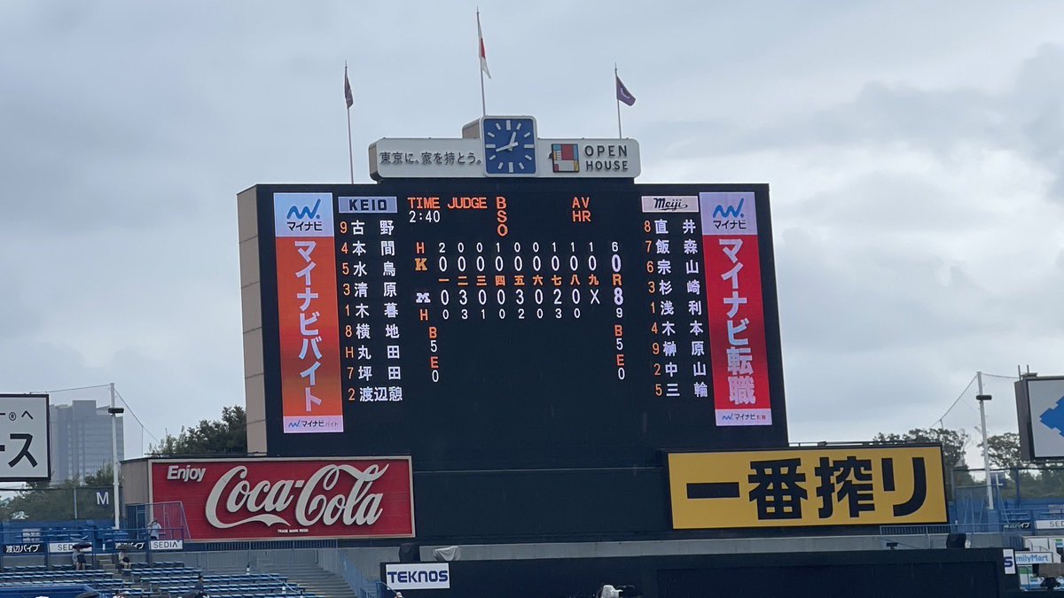 【試合速報】対明大二回戦試合終了慶0-8明昨日の同点劇から一夜明け、先勝を挙げたい慶應は左のエース毛利相手に度々のチャンスを作るも無得点に抑え込まれる。投手陣も2本の3ランHRなどで8失点を許し完敗。..