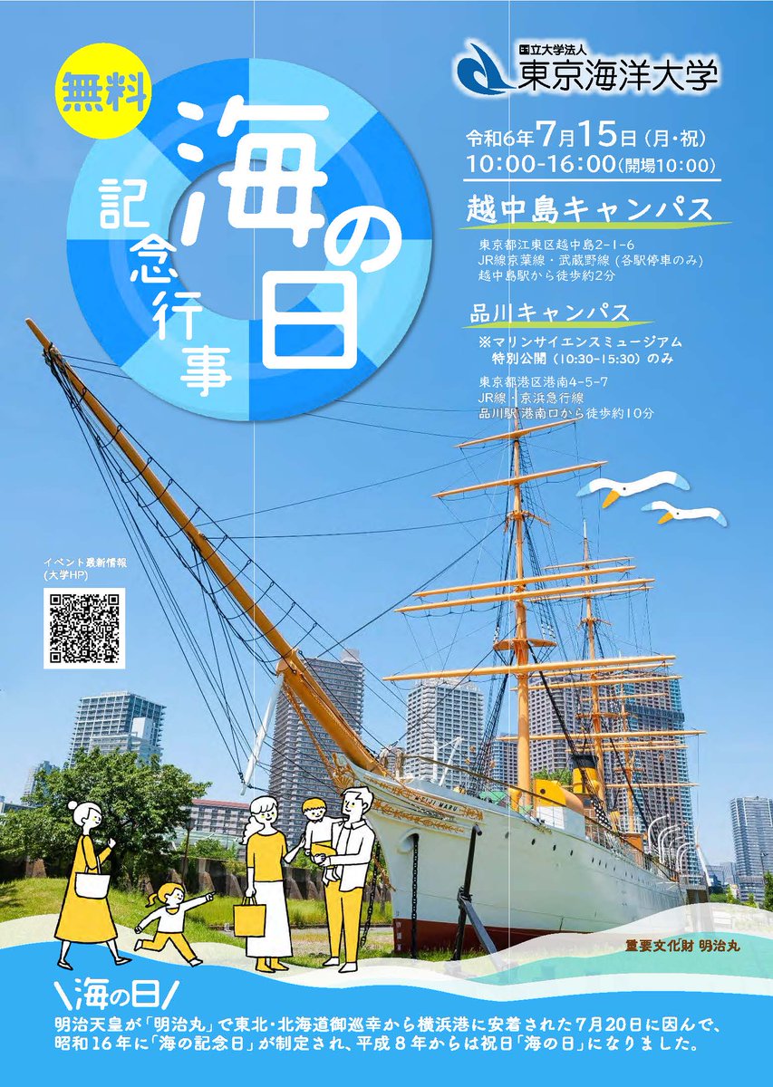 【イベント案内】<一般の方向け>いよいよ7月15日(月・祝)「海の日記念行事」の開催が近づいてまいりました!お越しいただける方は、暑さ対策万全でお願いします詳細↓https://kaiyodai.ac..