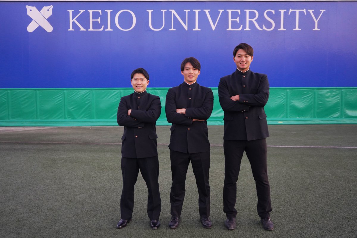 【新幹部発表】令和7年度慶應義塾体育会野球部が始動いたしました。主将:#外丸東眞(投手/前橋育英高校)副将:#今泉将(内野手/慶應義塾高校)主務:#勝野淳(慶應義塾高校)※写真左から、勝野、外丸、今泉..