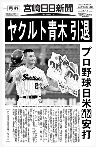 【号外公開中】ヤクルト青木引退https://the-miyanichi.co.jp#宮崎県#宮崎#宮崎日日新聞#プロ野球#ヤクルト#青木宣親