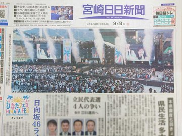 きょう8日付の宮崎日日新聞は#日向坂46#ひなたフェス2024特別紙面です#ひなたフェスの模様を1面、社会面、芸能面+紙面を引き抜いて保存できる4ページ特集で伝えますウェブでの購入(郵送)はこちらから..
