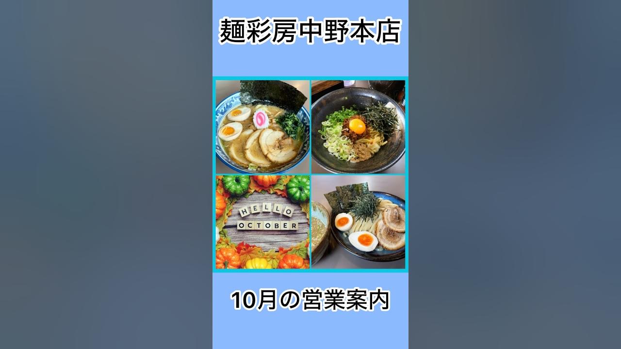 10月の営業案内 麺彩房中野本店@東京都中野区新井3-6-7 #中野つけ麺 #中野ラーメン #沼袋 #新井薬師前 #百年麺工房中野大成 #大成食品 #麺大盛り同料金 #麺の日 #ランチイベント