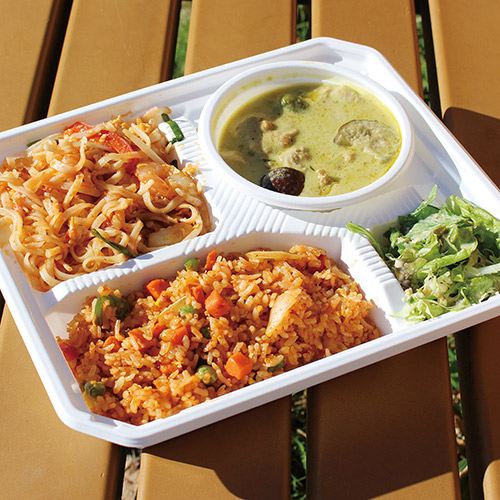 Mochica掲載店をご紹介。 中野区本町にある、アジア各国の料理が楽しめるアジア料理店 「チャオサイゴンパリバール」 パッタイ・グリーンカレー・ナシゴレンが一緒に味わえるお得なアジア弁当 “サイ弁当” をもちかえり♪
