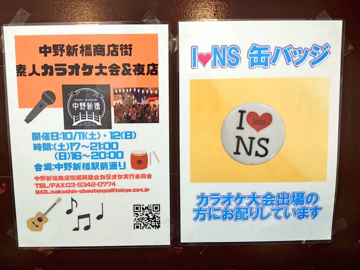 10月11日(土)・12(日)の夕方。中野新橋商店街の素人カラオケ大会が堂々開催。2日にかけて行われる人気のイベントです。両日とも駅前通りには夜店もならび沢山の人出で賑わいます。今回はオリジナル缶バッ..