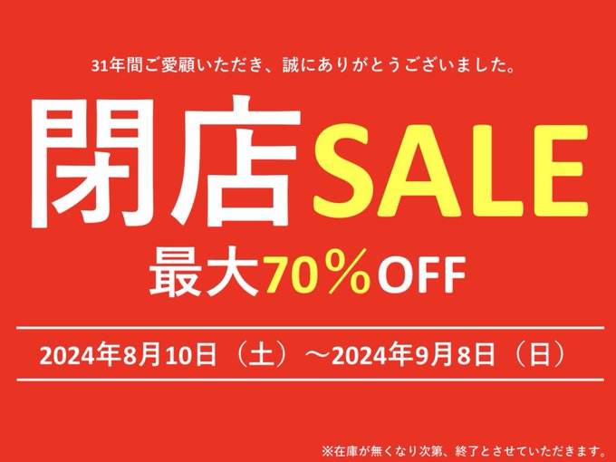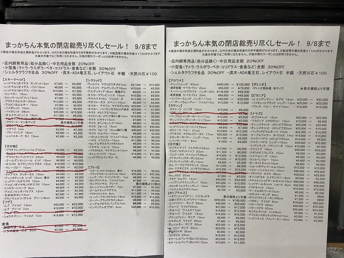 【重大告知】いつもアクアランドまっかちんをご愛顧頂きありがとうございます。本日当店の閉店日が正式に決まり、最終営業日は【9月8日(日)】となりました。それに伴い明日から最終日まで当店最後の特大セールを..