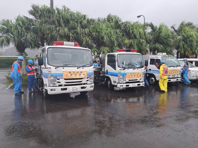 (水道局)22日、応急給水班は、3台の給水車に分かれ、仮設給水槽の設置場所や公共施設など、島内約20か所を毎日巡回しています。