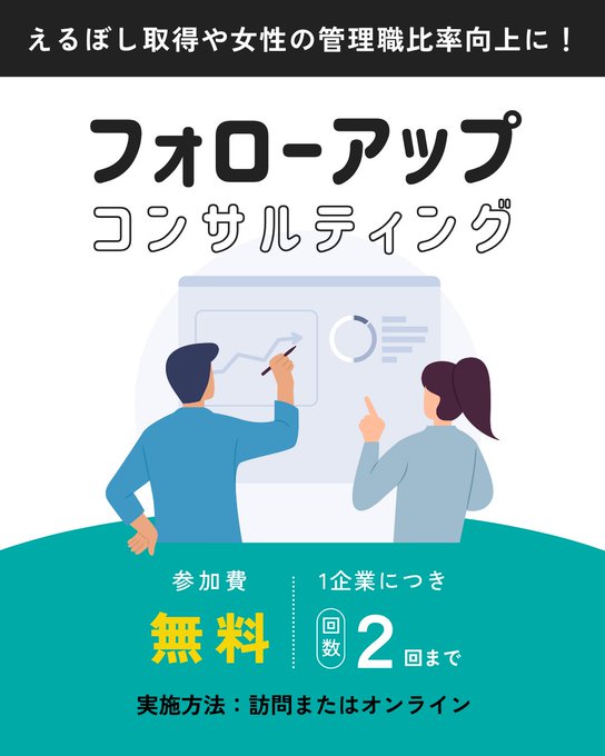 \フォローアップコンサルティングお申込み受付中!/えるぼし取得や女性の管理職比率向上に!各社の課題感に合わせて、実行可能な一般事業主行動計画の策定を社会保険労務士がサポートします。▼詳細・お申込みht..