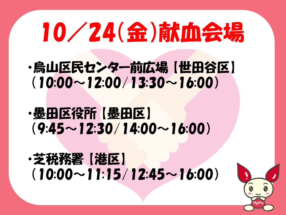 献血会場のお知らせ明日は#烏山区民センター#墨田区役所#芝税務署で献血実施予定ですラブラッドでのご予約は三時間前まで可能です!!!皆様のご協力をお待ちしておりますhttps://bs.jrc.or.j..