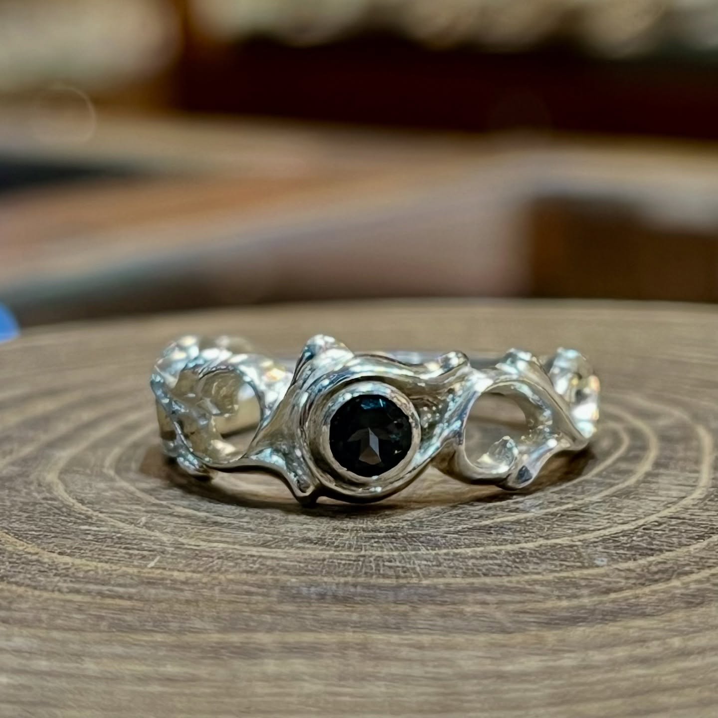 .シルバーリングのご紹介。唐草模様のリングにロンドンブルートパーズでございます。ガーネット、ルビーなどなど他の石もお選び頂けます。#シルバーアクセサリー#silver925#ブルートパーズお問い合わせ..