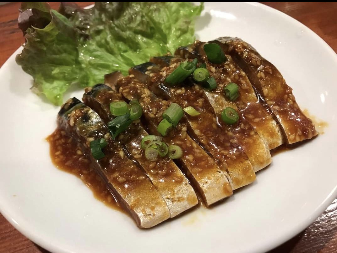 「魚介類おつまみメニュー」 ・胡麻さば(590円) 福岡の名物料理の1つ‘胡麻さば‘。 おろし生姜、胡麻の入った甘塩っぱいタレに、鯖を合わせました。 ・ホタテチャンジャ(450円) ・たこわさび(450円)