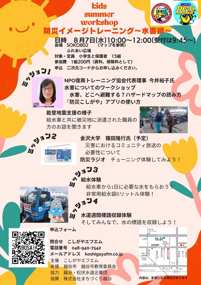 防災イメージトレーニング~水害編~を開催します!被災時、自分に何ができるか一緒に考えてみましょう。今回のテーマは「水」■日時8月7日(水)、10:00~■会場SOKO802(越ヶ谷1-4-7)、ふれあ..