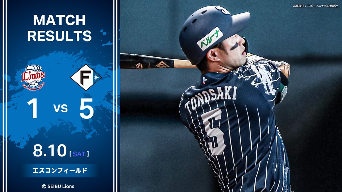 [8/10結果]L1-5F2回に#外崎修汰選手の本塁打で先制。先発の#今井達也投手は6回まで無失点に抑えますが、7回に逆転を許します。その後もリードを広げられ、勝利をつかむことはできませんでした。#埼..