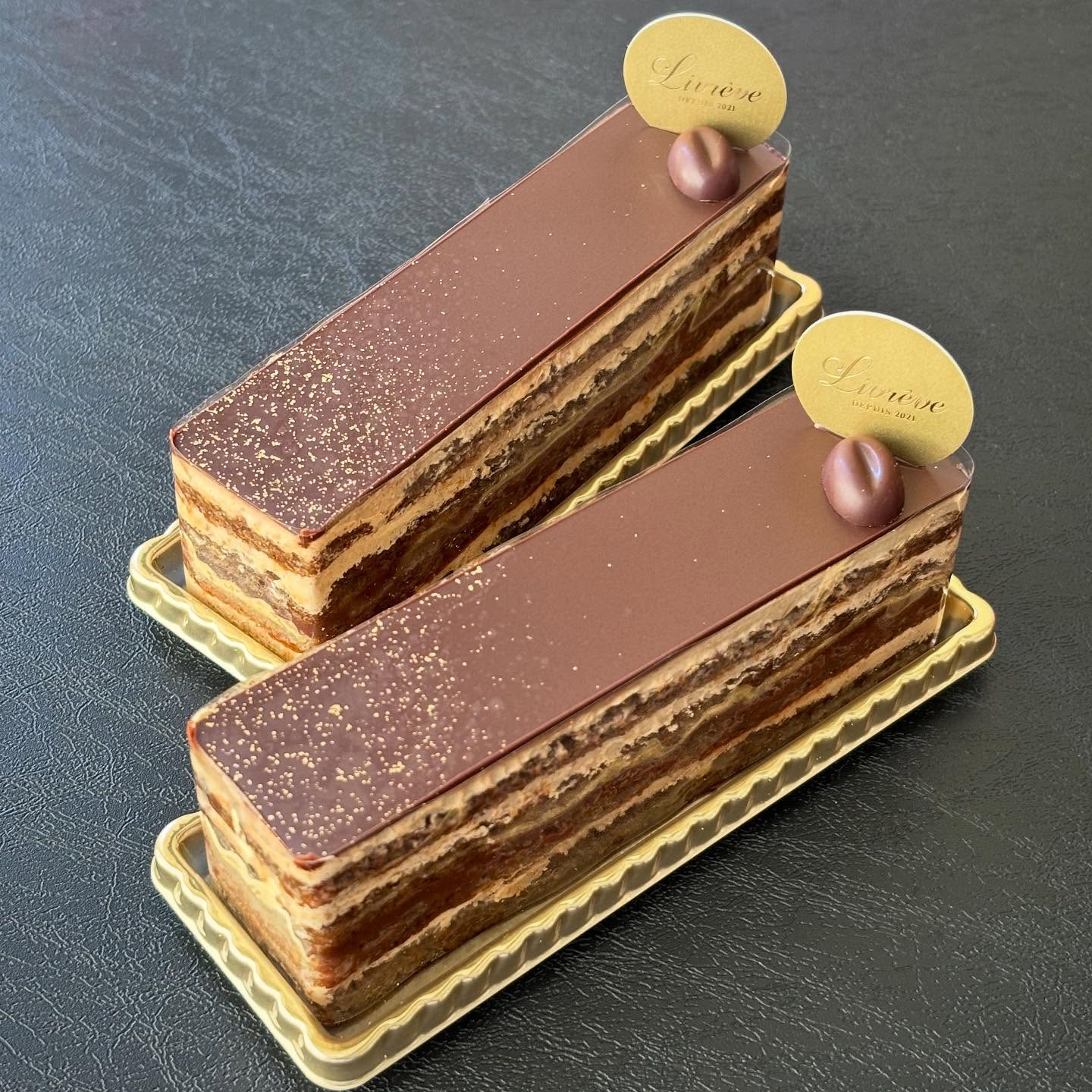 "オペラ" コーヒーのクレームオブールと、コーヒーのシロップを染み込ませたビスキュイ。それらを交互に重ね合わせ、間にガナッシュを挟んだフランスの伝統菓子、オペラ。 リヴレーヴでは、コーヒーの風味をより..