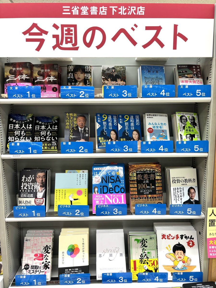 いつもありがとうございます! 今週の #三省堂書店 #下北沢店 のランキングです。
