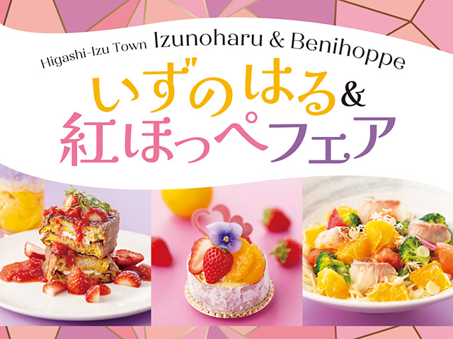 【いずのはる&紅ほっペフェア:3/3(月)まで】静岡県東伊豆町の旬のフルーツを使った、春の特別スウィーツ&グルメが勢揃い!苺を贅沢に乗せたパンケーキや、爽やかな柑橘サラダうどんなど、目にも華や..