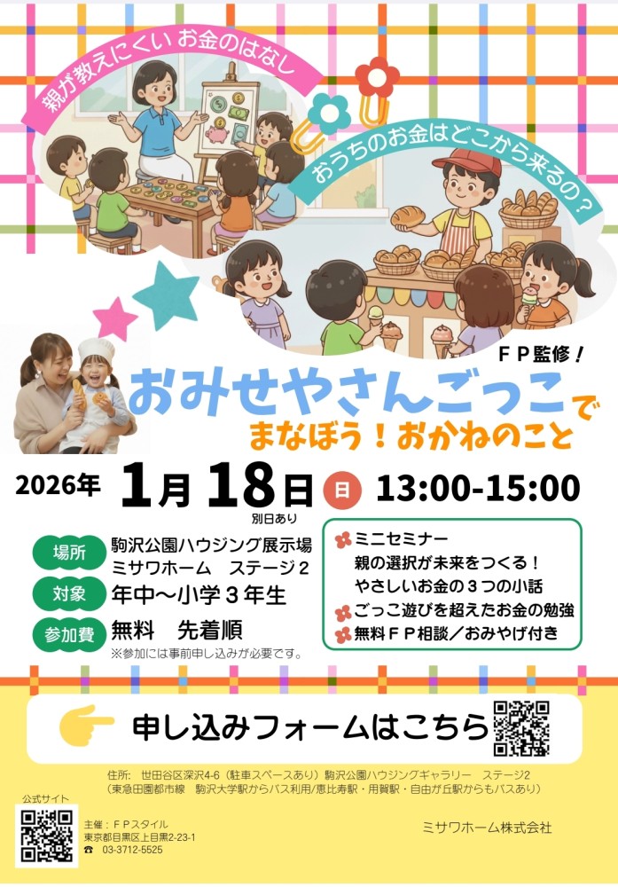 FP監修!「おうちのお金はどこから来るの?」をテーマに、親子で楽しくお金の仕組みを学べるイベントです。