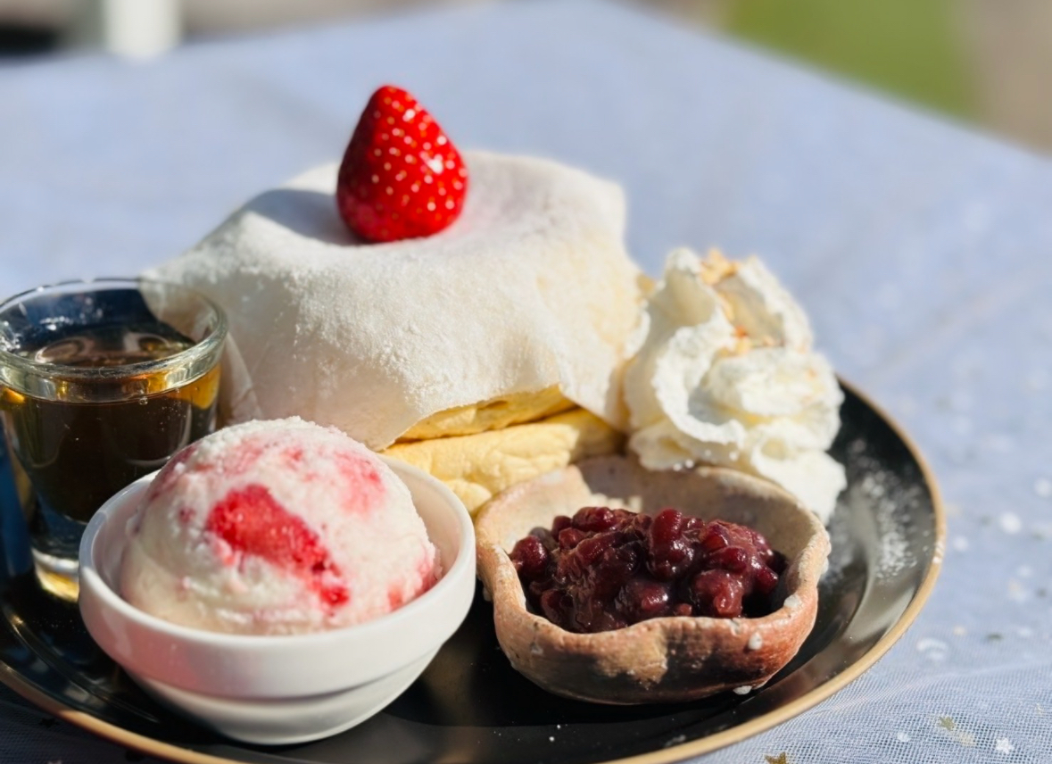 ◎いちご大福パンケーキbyかなめカフェ(kaname77cafe)お餅の上に東近江市のいちごをのせた和パンケーキです!手作りのいちごのアイスと一緒にお楽しみ下さい😊#おいしがうれしが#かなめカフェ#ア..