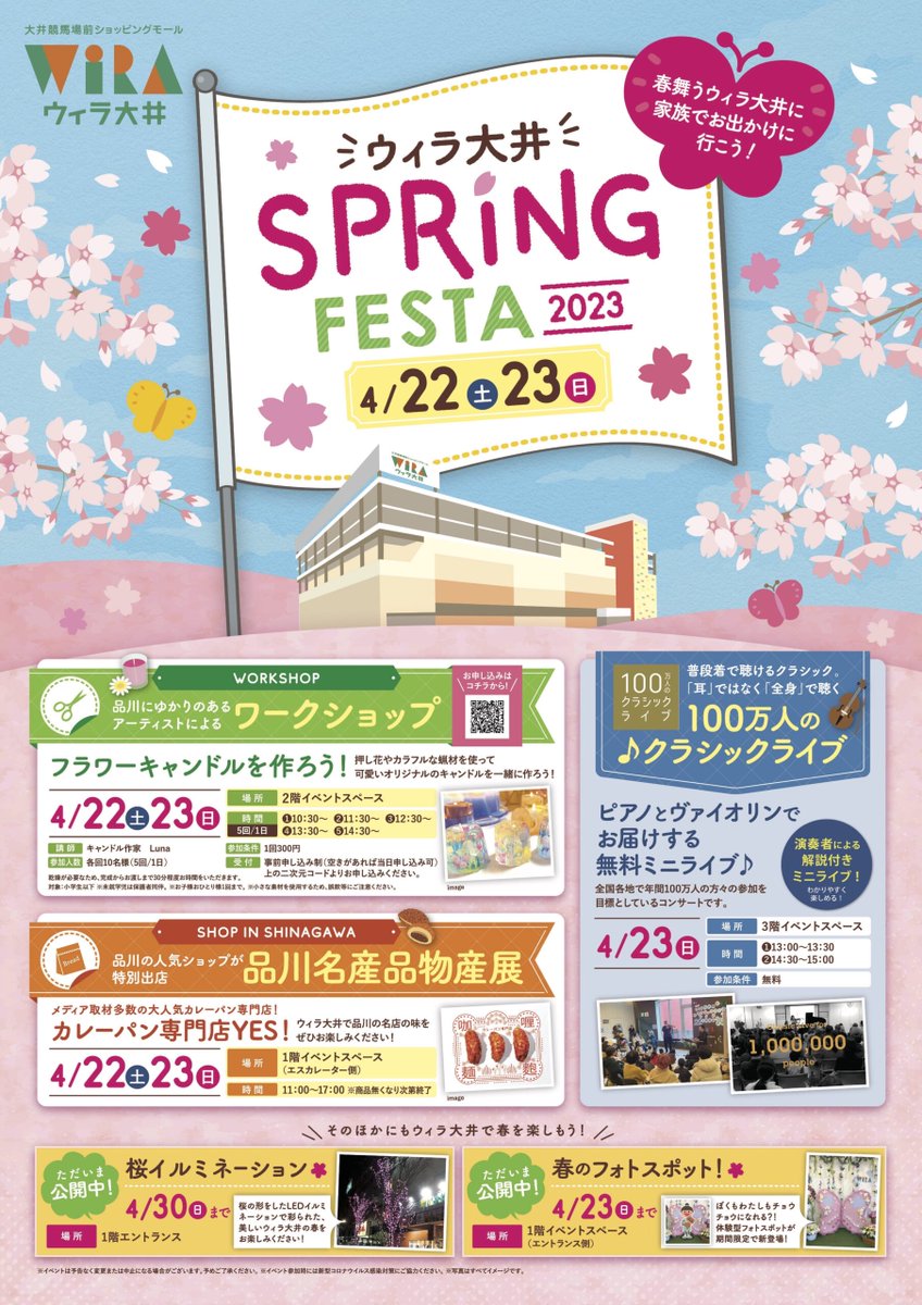 【ウィラ大井「スプリングフェスタ2023」】大井競馬場前のウィラ大井にて「スプリングフェスタ2023」が開催されます。品川にゆかりのあるアーティストによるワークショップ、100万人のクラッシックライブ..
