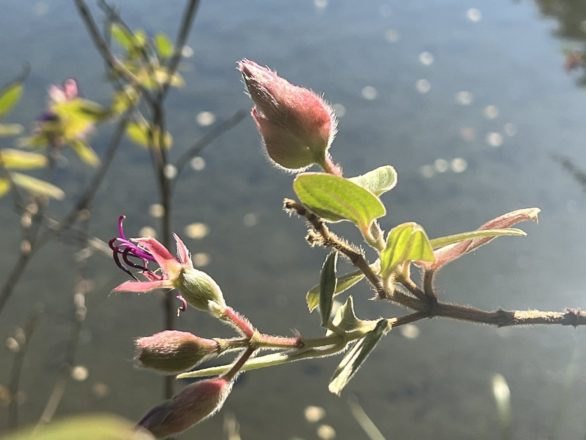 こんにちは。戸越公園のノボタンです。蕾は桃のようなふさふさした毛に覆われています。西側の入り口付近にはヤツデが咲いています。#戸越公園#ノボタン#ヤツデ005