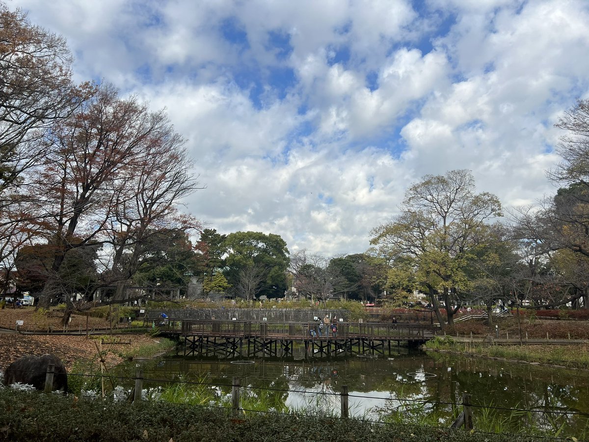 文庫の森の様子です。今日は雲が多いですね。気温は11℃ですが、日差しが暖かく過ごしやすいです。 #文庫の森