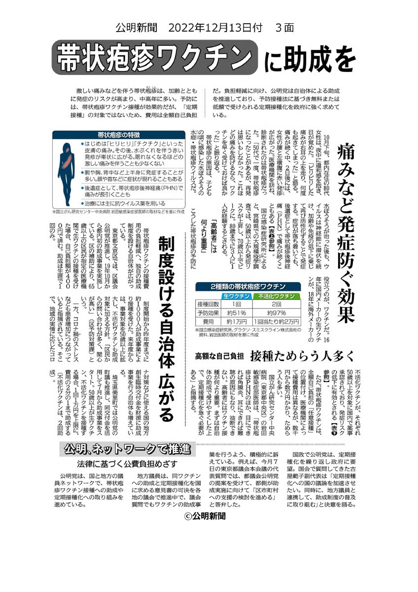 公明新聞電子版「帯状疱疹ワクチン」に助成を公明党新宿総支部としても実現に向け取り組んでいます。#公明党#ツギコメ#ワカモノニヒカリヲ#野もとあきとし#区民相談第一。0011