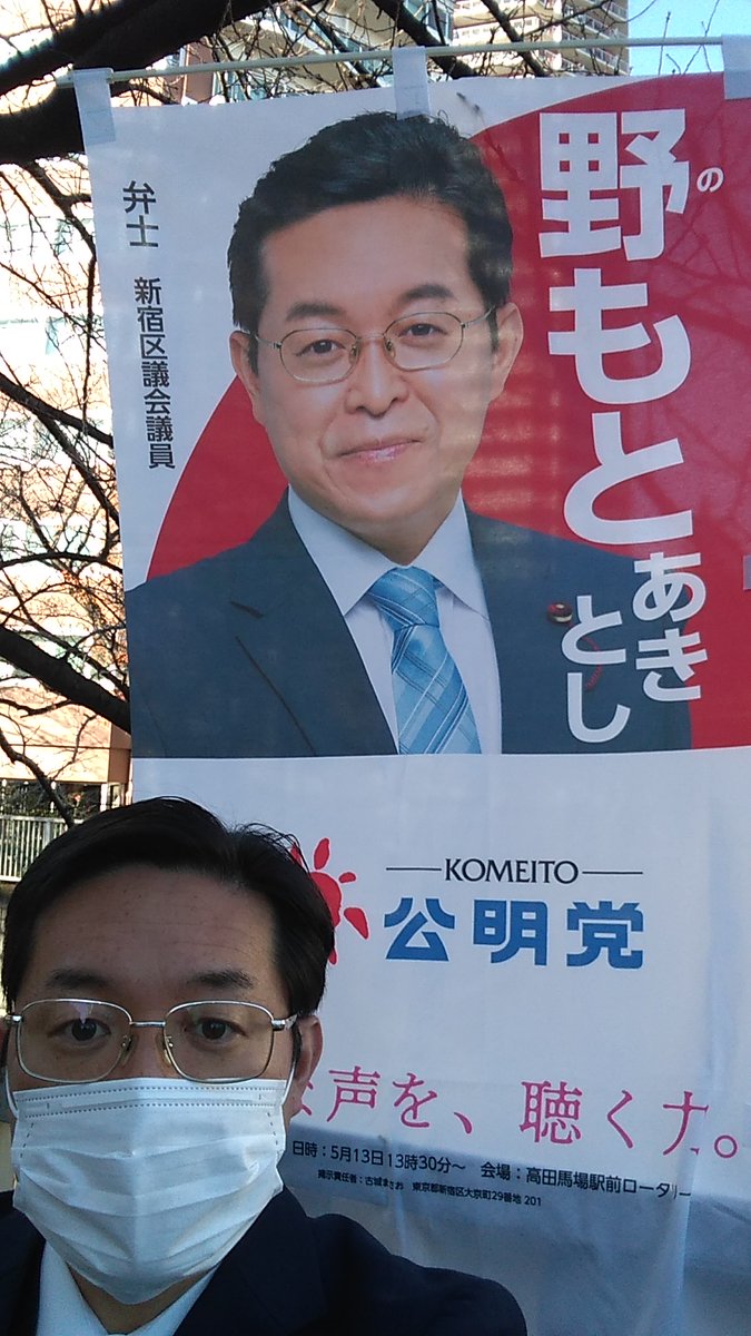 2022年12月14日(水)朝・快晴、北新宿4丁目の大東橋で街頭活動を行いました。本日は新宿区議会の委員会が開催されます。皆様の声を区政に反映できるように頑張ります。 #新宿区 #新宿区議会 #公明党 #ツギコメ #野もとあきとし