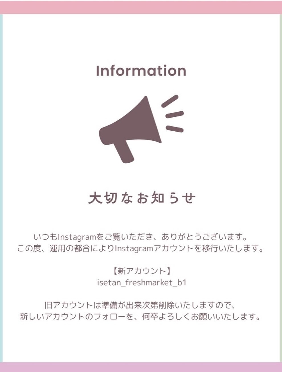 【アカウント移行のお知らせ📢】いつも〈フレッシュマーケット〉Instagramをご覧いただき、誠にありがとう..
