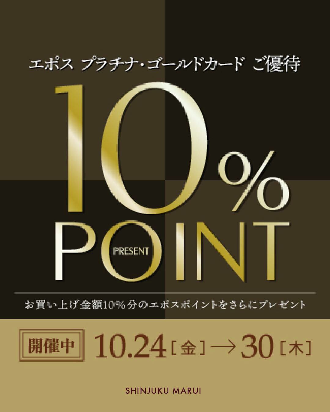 10/24日(金)~10/30(木)の7日間限定🔥エポスプラチナ・ゴールドカードご優待『10%ポイントプレゼント7DAYS』🥹💰【エポスプラチナカード、ゴールドカード会員さま】必見👀お会計金額の10%..