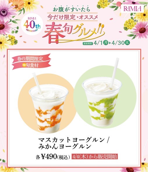 【ドトールコーヒーショップ】マスカットヨーグルン/みかんヨーグルン¥490(税込)ヨーグルト風味のフローズンに「長野産シャインマスカット」「愛媛県産せとか」を使用したソースを合わせた、爽やかな香りを楽..