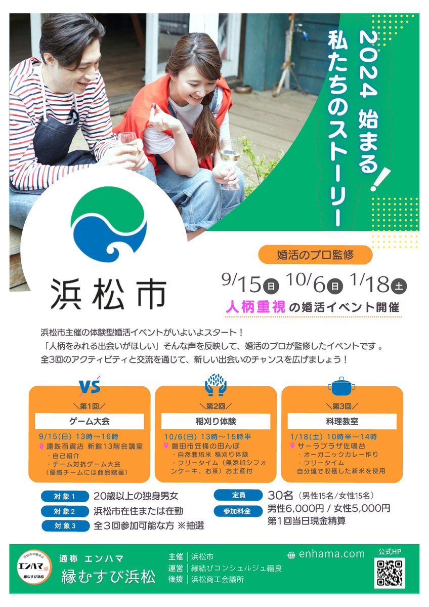 【全3回体験型婚活イベント参加者募集中!】婚活イベント「私たちのストーリー」の参加者を募集しています。<申込期限>9月8日(日)正午※抽選<開催日>第1回9月15日(日)第2回10月6日(日)第3回令..