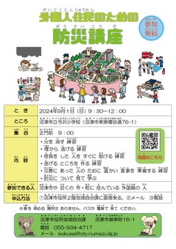 【DisasterDrillforForeignResidents】「外国人住民のための防災講座」を9月1日(日)に開催します沼津市か、近くの市や町に住む外国人が参加できます。災害について学んだり、体..