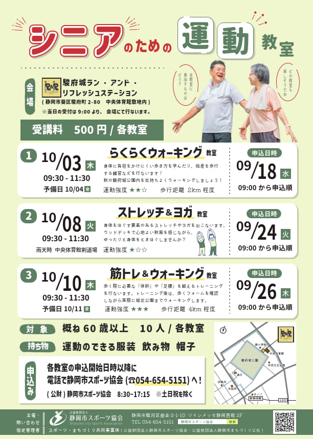 らくらくウォーキング教室10/3(木)9:30~11:30本日9:00から申込が始まりました!電話でお申し込みください。(公財)静岡市スポーツ協会054-654-5151https://shizuok..