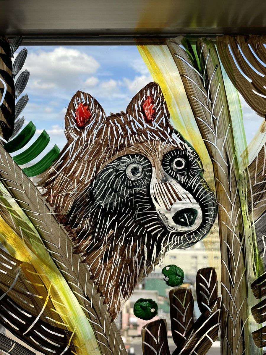 午後からはたづくりで行われている某協会の会議にお邪魔してきました。会議終わりに11階窓のアートにまた癒される。#どうぶつ#ウォールアート#調布000