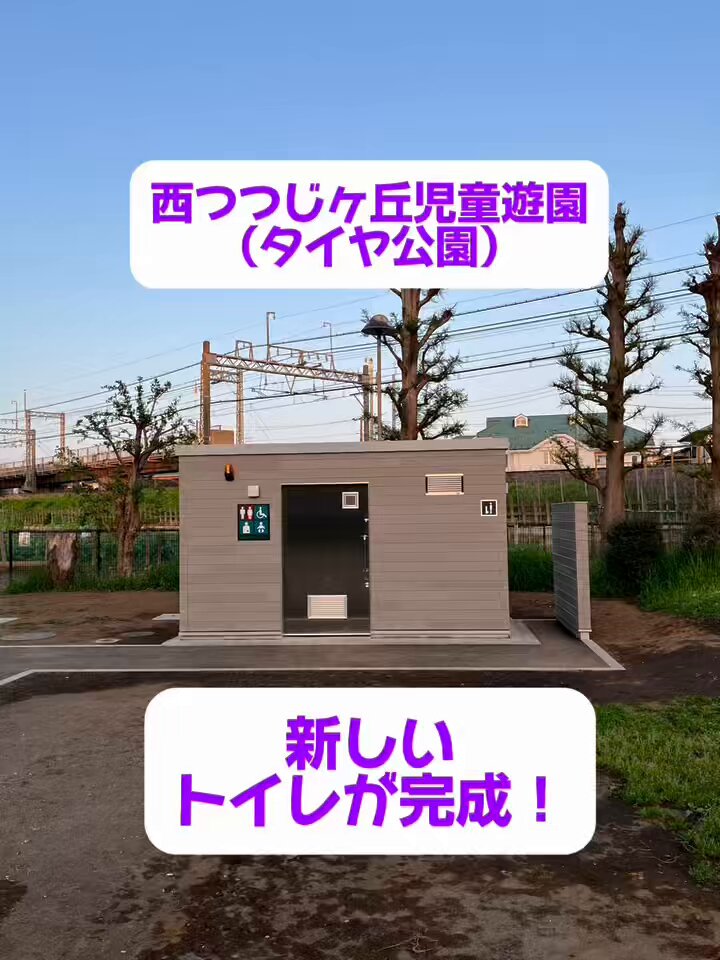 西つつじヶ丘児童遊園(タイヤ公園)のトイレがリニューアル✨以前のトイレは子ども達がトイレに行きたくなると家に帰ってくるとお聞きしていました😱新しくなったトイレ🚾はどなたでも安心して利用できます🫶明日の..