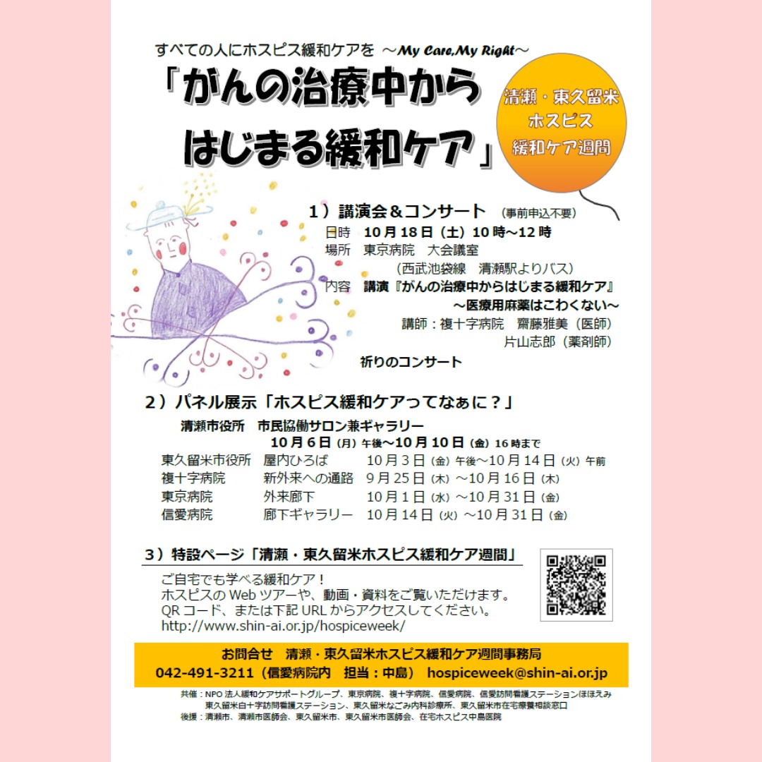 【清瀬・東久留米ホスピスケア週間のお知らせ】清瀬・東久留米ホスピス緩和ケア週間の中で10/18(土)10..