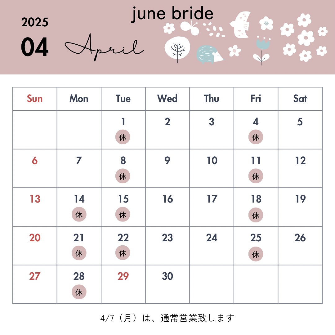 2025.03.30(日)4月の定休日のご案内です4/7(月)は、入学式などもある為、通常営業致します。4/29(火)も昭和の日で祭日の為、通常営業致します。ご予約、ご来店お待ち致しております😊---..