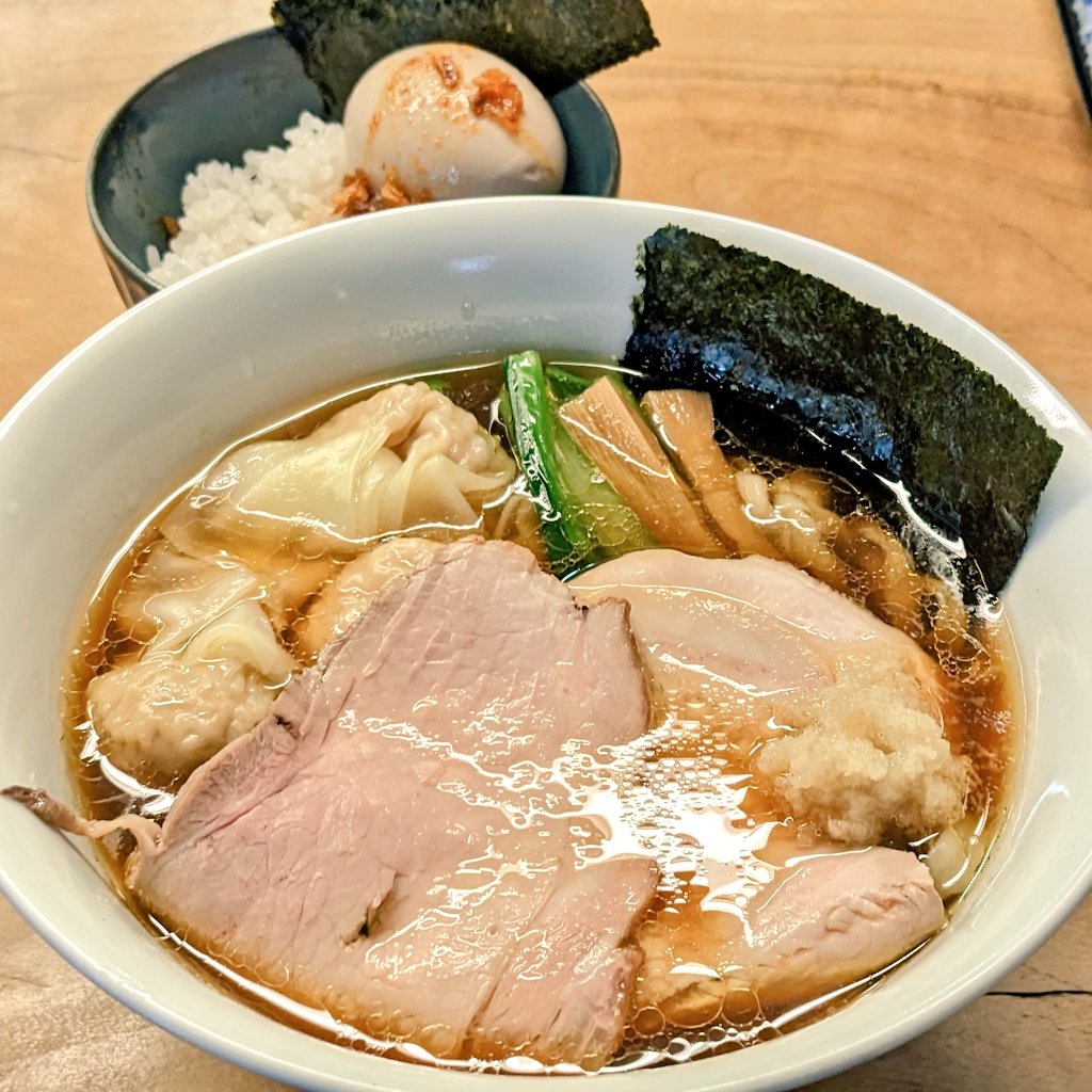 一番いちばん@町田雲呑生姜中華+味玉ごはん並びで冷えたカラダに沁み渡る鶏スープにほっこり☀️おろし生姜の風味も良くて芯から温まるなぁ😊💕ジューシーな大粒雲呑やピロピロ手揉み麺は今日もめちゃくちゃ美味し..
