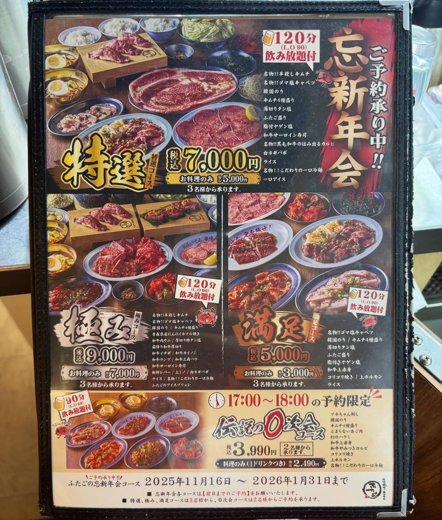 こんばんは!大阪焼肉ホルモンふたご町田店です🍖✨️今年度の忘新年会コースのお知らせです!今年度のコースは4種類‼️◆満足コース税込み5,000円(お料理のみ3,000円)🍻120分飲み放題付き..