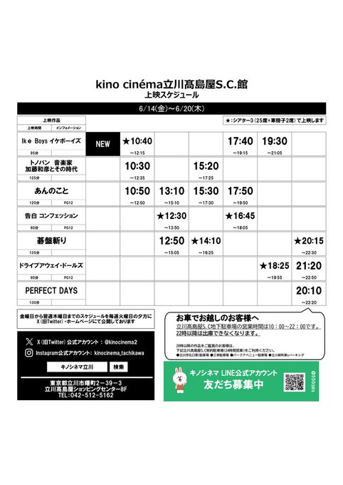 6/14(金)~6/20(木)上映スケジュール6/14(金)公開『#IkéBoysイケボーイズ』#クイン・ロード#ローナック・ガンディー6/13(木)終了『#若武者』#坂東龍汰#髙橋里恩